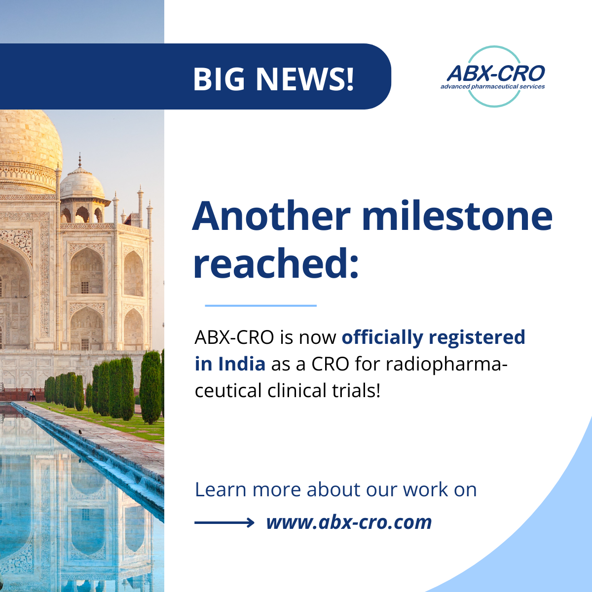 We are proud to announce that ABX-CRO is now officially registered in India as a Contract Research Organization (CRO) specialized in radiopharmaceutical clinical trials.